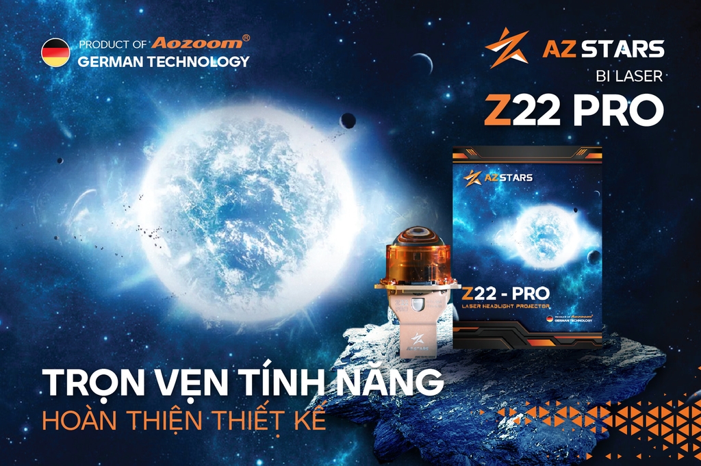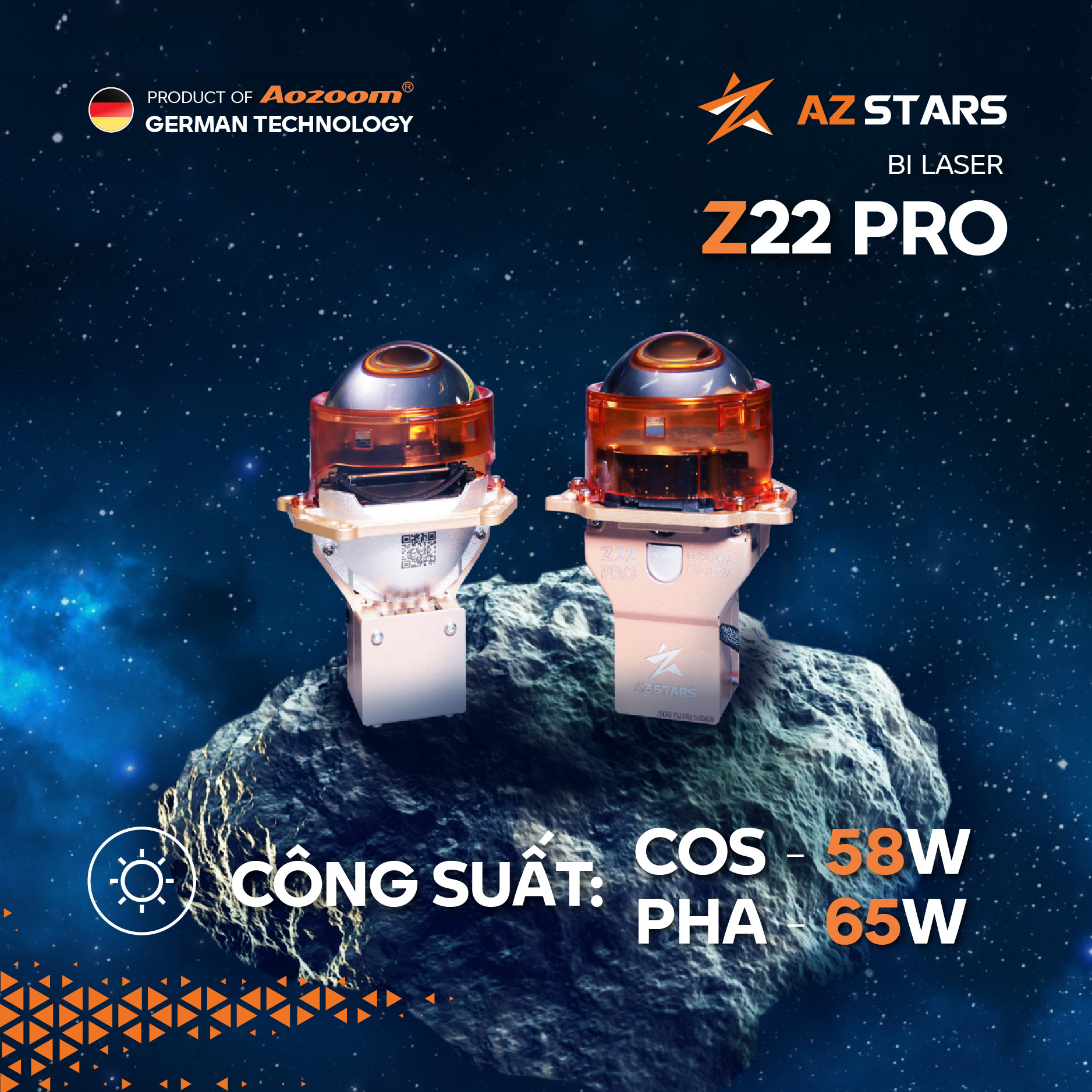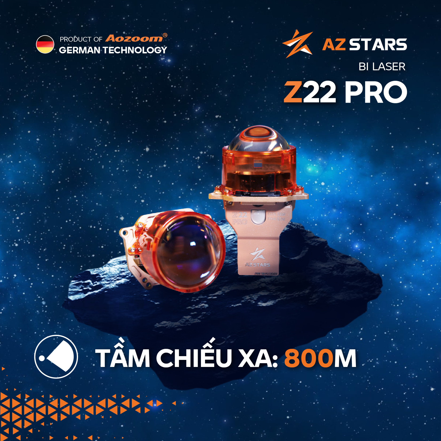 CỘNG HƯỞNG LASER, TUYỆT TÁC ÁNH SÁNG Dẫn đầu mọi hành trình cùng ánh sáng của vì sao sáng nhất bầu trời đêm. AZ STARS Z22 PRO được cải tiến vượt bậc, thách thức giới hạn với ánh sáng mạnh mẽ được cộng hưởng từ Chip LED và Diode LASER. Tinh hoa công nghệ tạo nên một tuyệt tác soi sáng hành trình của bạn.